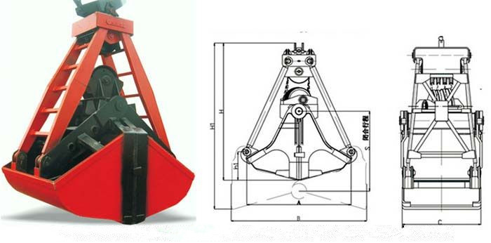 Във всички видове кран, с две групи барабани (електрически повдигач), всяка група от барабанни двигатели води едно телено въже, едно въже въже в равновесна рама за опора, а другото въже минава нагоре и надолу лъч пулсиращо, комбинирано като ролка на ролката като отваряне и затваряне на кофата за прибиране.