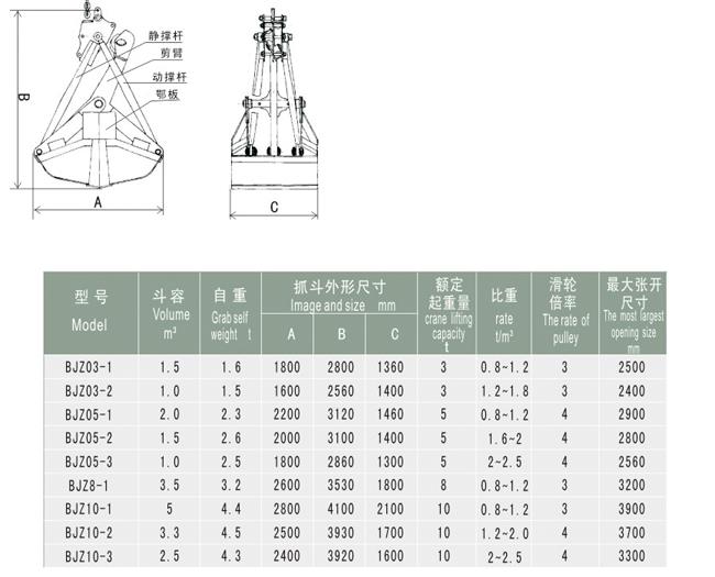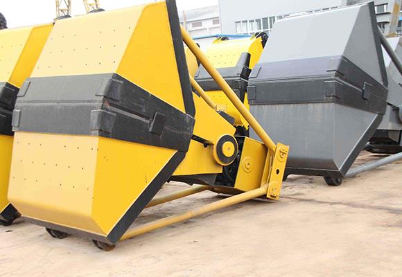 Прибиращото устройство тип "полуразряд" е вид абсорбиращ дълъг прът за прихващане и срязване, както и комбинацията от две предимства, като предмишницата, подвижната подпора, статичния стълб и челюстта и т.н. Централната шарнирна част на предмишницата е шарнирно свързан в единия край на предното рамо на централната шарнирна шайба на челюстта, а другият край е снабден с плъзгащо колело. Плъзгащото колело е повдигнато по време на операцията, така че челюстта е затворена, хващайки материала и силата на хващане е силна. Лесно се отваря и е подходящ за работа с насипни материали като жълт пясък, въглища, пясък и стоманена шлака за единични въжета и двойни въжени кранове.