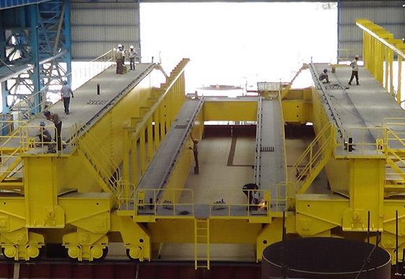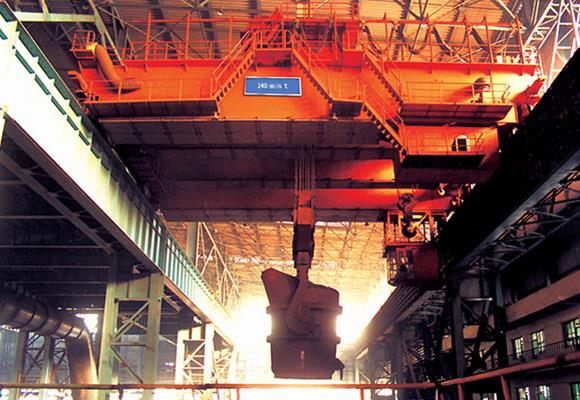 YZS модел 125 / 32-320 / 80 тон четири-релсов леярски кран се използва главно за пренос, изливане и горещо метално зареждане на течен метал при топене в леярна, леярна, стомана, топилна цех и т.н. При повдигане на топене на метал, главната кука, висяща на двете уши на стоманената печка, с кука за козметика, докато aux. кука люлее да се излее. Стандартната кука за този вид кран е обикновена кука за леене, ако искате да използвате кран за повдигане на кофата, той може да се използва заедно с куката за портали.