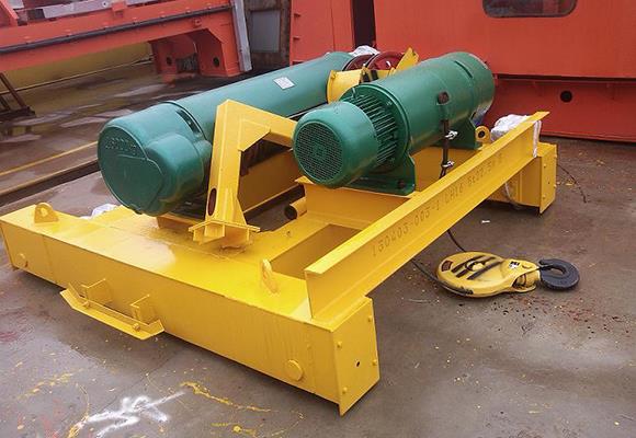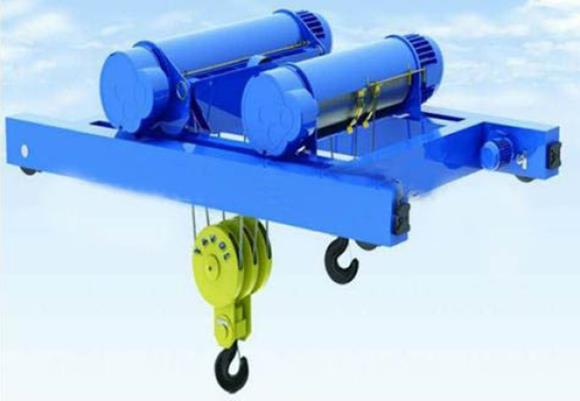 Товароподемно устройство с двойна релса е широко използвано, особено когато електрическият повдигач като механизъм за повдигане с леко натоварване не може да отговори на изискванията за повдигане. Той се състои от електрически повдигач, колело и количка fram5. чрез релсите, монтирани на гредите на крана, количката може да реализира пътуването от едната страна на другата.