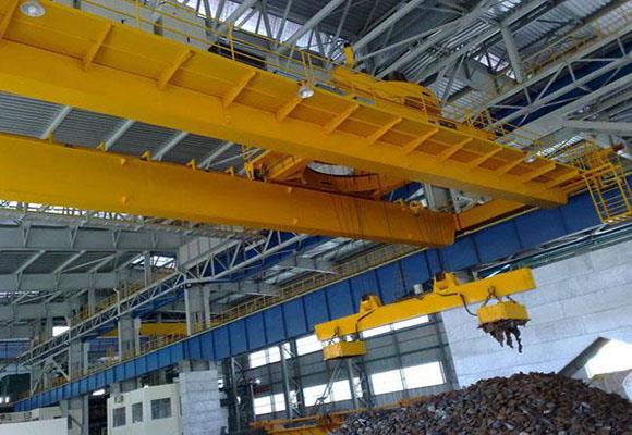 Двойният мостов кран Crane with Electromagnet е специализиран кран за повдигане и преместване на стоманени продукти, стоманени плочи и стоманени тръби. Този кран се състои от греда, механизми за придвижване, повдигаща количка, електрически части и електромагнитен разпръсквач. Електромагнитната смукателна сила на този мостов кран може да продължи 10 минути след изключване. Формата на електромагнитния разпръсквач може да бъде персонализирана основа за формата на материалите, които трябва да се повдигнат.