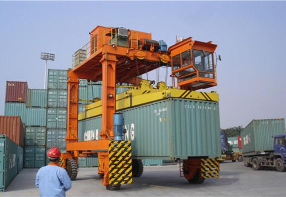 Контейнерен транспортен портален кран също така се използва главно при подаване на кораби, подаване на големи конструкции, товарене и разтоварване. Адаптиране на множество повдигащи точки комбиниран разпръсквач, той може да задоволи всички видове сложни експлоатационни условия, изисквани от клиента. Контейнерът може да се върти около 360 градуса около центъра на крана, гъвкавият механизъм на хидравличното задвижване и механизмът за повдигане могат да реализират безстепенна трансмисия, могат да задоволят всички експлоатационни изисквания при различни условия, механизмът за придвижване приема хидравлична верига, високоефективна трансмисия и ниска степен на неуспех. Има отлични инструкции за безопасност и устройство за защита от претоварване, което гарантира безопасността на оператора и оборудването. Цялото действие на механизмите се приема за контрол на контакта.