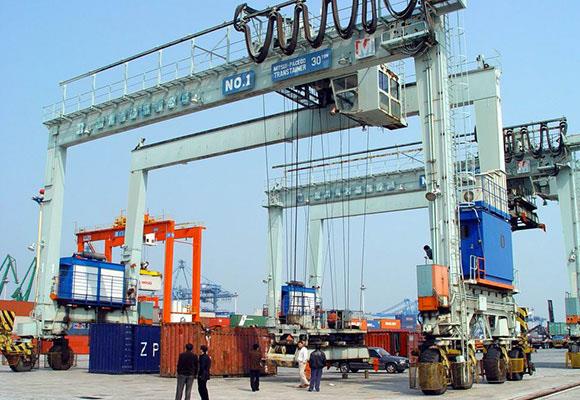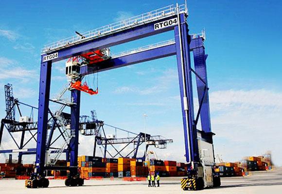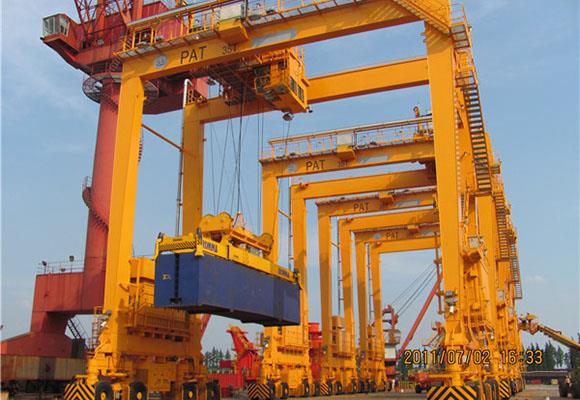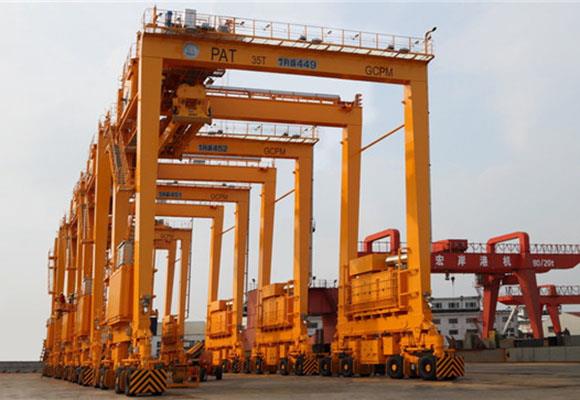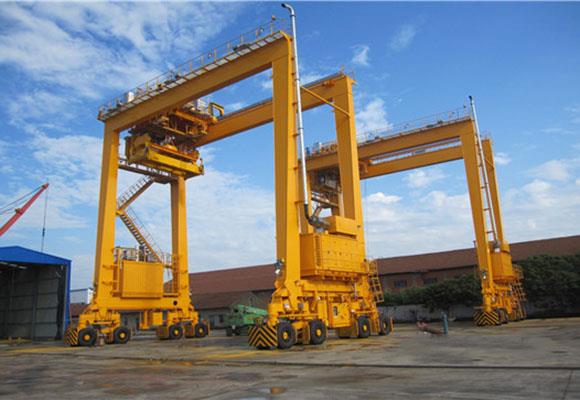 1. Каучуков кран за контейнери с каучук, който обикновено се нарича RTG за кратко, който се използва за натрупване на контейнери в контейнери за съхранение на контейнери. Контейнеровачният кран на контейнера за гуми се придвижва гъвкаво от собствените си гуми за трансбордиране на контейнери.