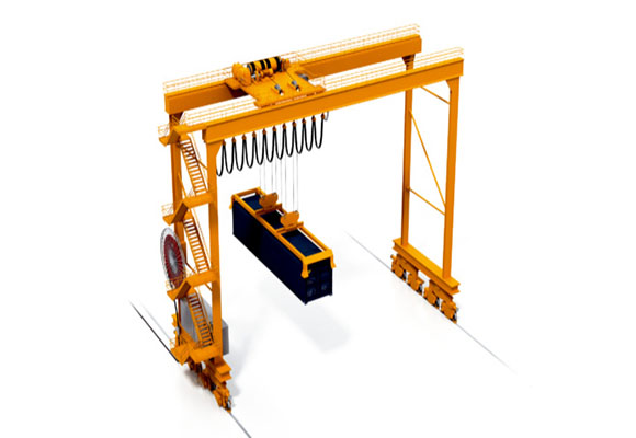 Складовият кран се използва основно за товарене, разтоварване, преместване и подреждане на контейнери в железопътни трансбордиращи полета и големи съдове за съхранение на контейнери. Тя се състои от основна греда, твърди и гъвкави изпъкналости, механизъм за преместване на количката, повдигащ механизъм, механизъм за придвижване на крана, електрическа система и кабина за работа.